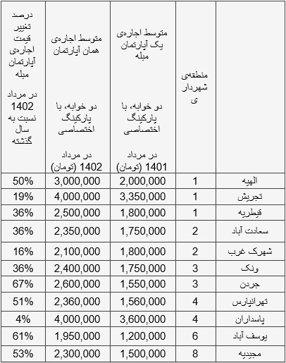 در این گزارش قرار است به بررسی قیمت اجاره روزانه واحد مبله در ده منطقه مختلف از تهران و میزان رشد قیمتها به نسبت سال گذشته بپردازیم.