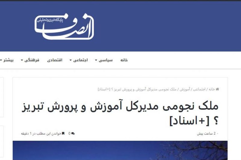انصاف نیوز خبری کار کرده با عنوان: ملک نجومی مدیرکل آموزش و پرورش تبریز + اسناد