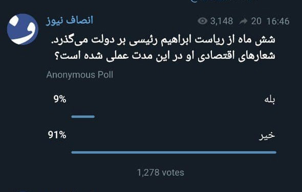 انصاف نیوز در بسترهای مختلف یک موضوع را نظرسنجی کرد و نتایج آن در پی می آید:
