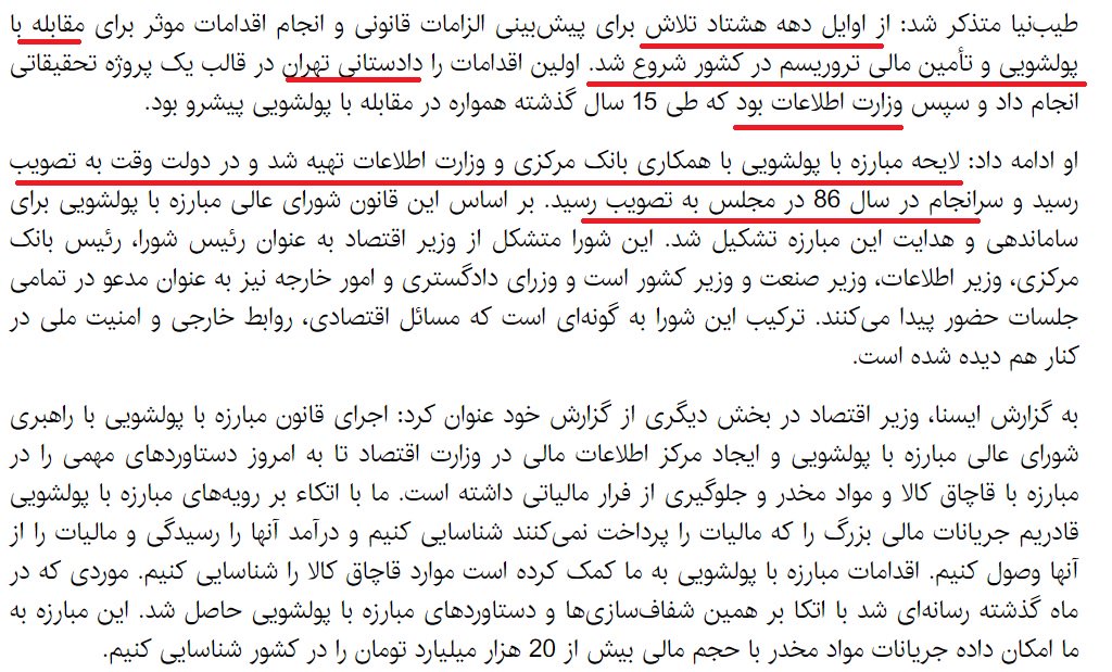 در حقیقت با اجرای AML (که در دولت قبل تصویب و تایید شد) و CFT تازه الزامات گروه FATF اجرایی شده!