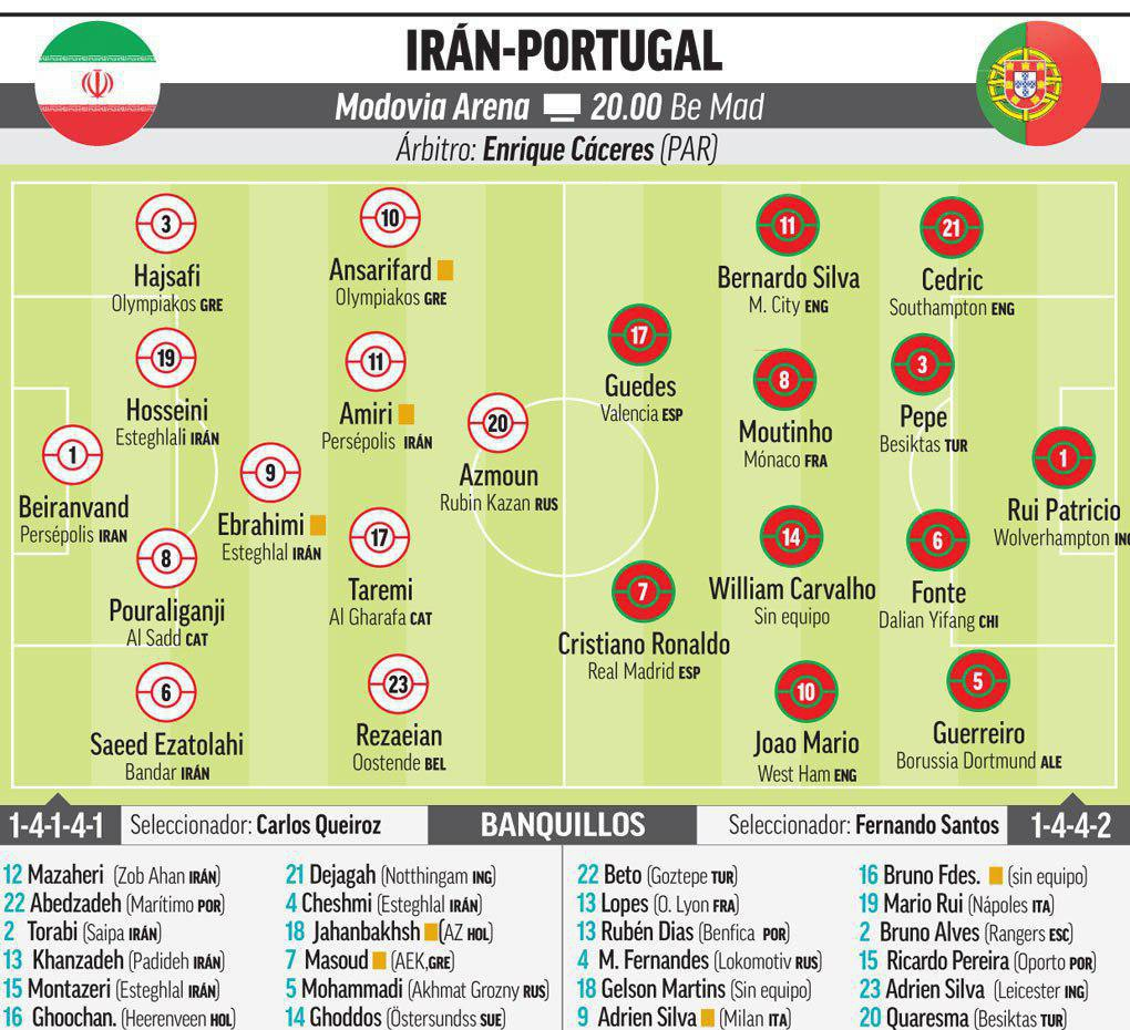 روزنامه مشهور مادریدی ترکیب احتمالی دیدار ایران و پرتغال را اعلام کرد.