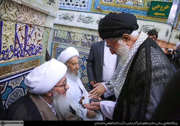 مراسم غبارروبی ضریح امام رضا باحضور رهبری و آیتالله وحید، مکارم و مصباح [+عکس]