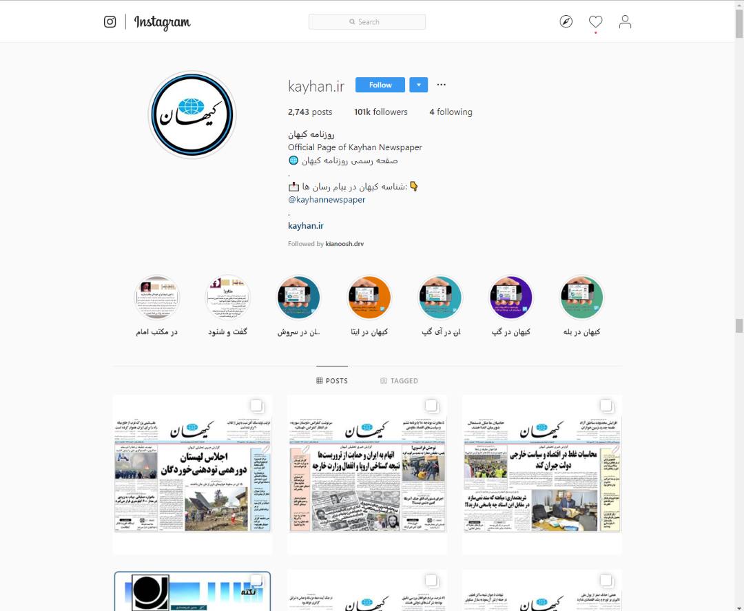 روزنامهی تندروی کیهان علی رغم مواضع در ظاهر موافق با فیلتر کردن اینستاگرام اما در این شبکهی اجتماعی حضور دارد.