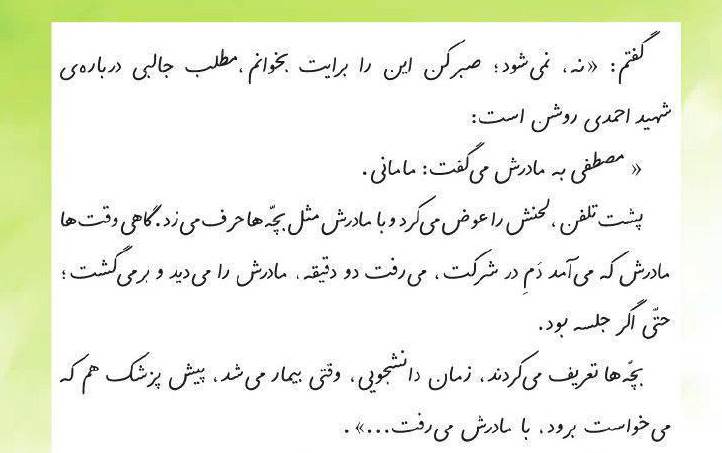 خاطرهای از احمدی روشن در کتاب پنجم ابتدایی