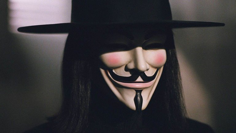 در چنین دنیایی (وی) با نقاب گای فاکس به مبارزه علیه این سیستم برخواسته است.