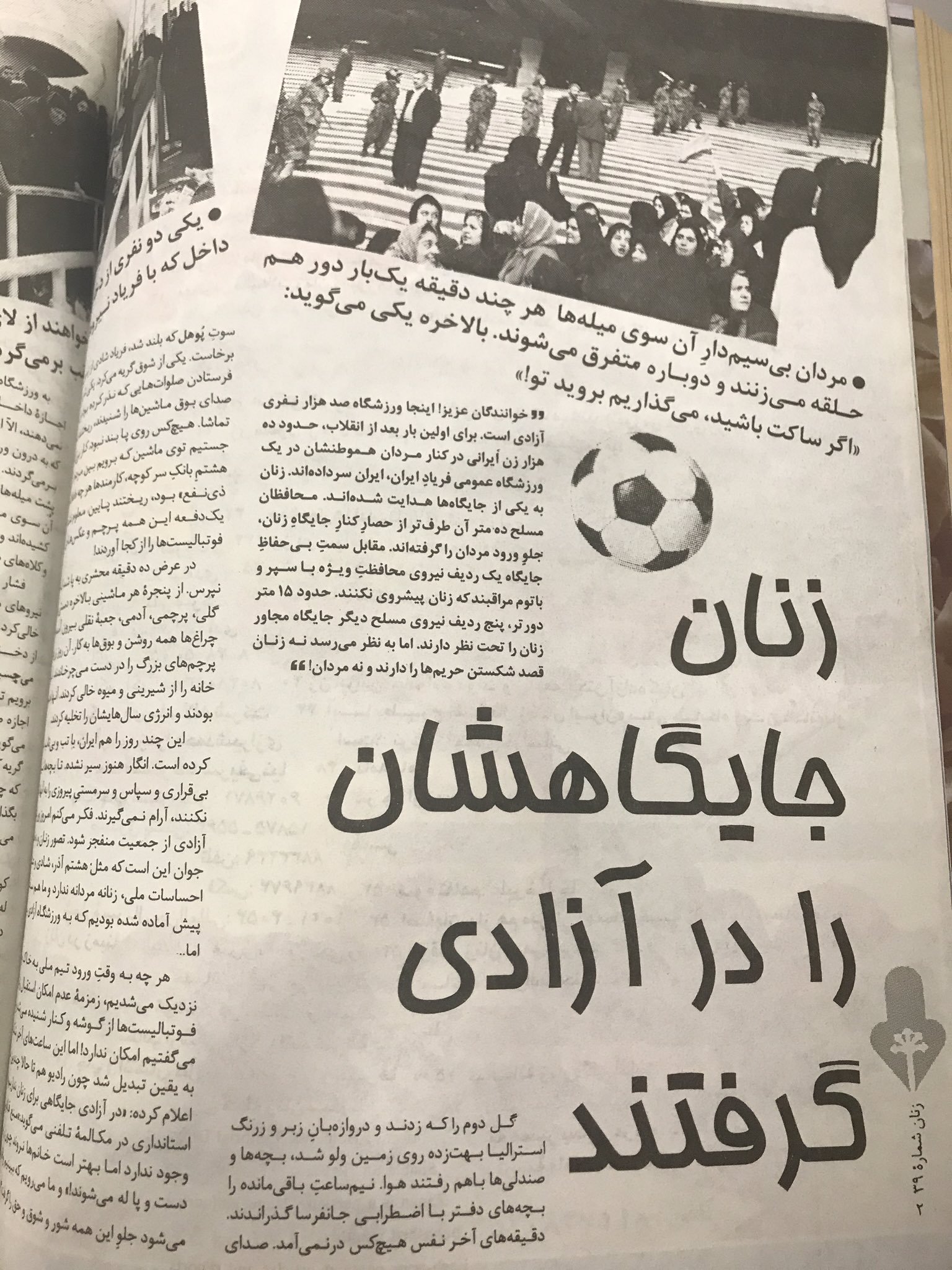 پ.ن: گزارش نشریه زنان از ورود عدهای از زنان به داخل استادیوم پس از تجمع مقابل استادیوم آزادی – سال ۷۶