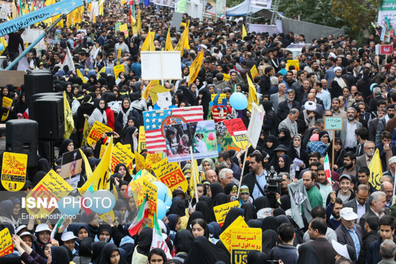ایسنا نوشت: راهپیمایی ۱۳آبان در مقابل سفارت سابق آمریکا در تهران و همچنین سایر استانها در حالی با حضور اقشار مختلف مردم، بهویژه دانشآموزان و دانشجویان برگزار شد که رسانههای جهان بازتاب قابل توجهی از این رویداد ارائه دادهاند.
