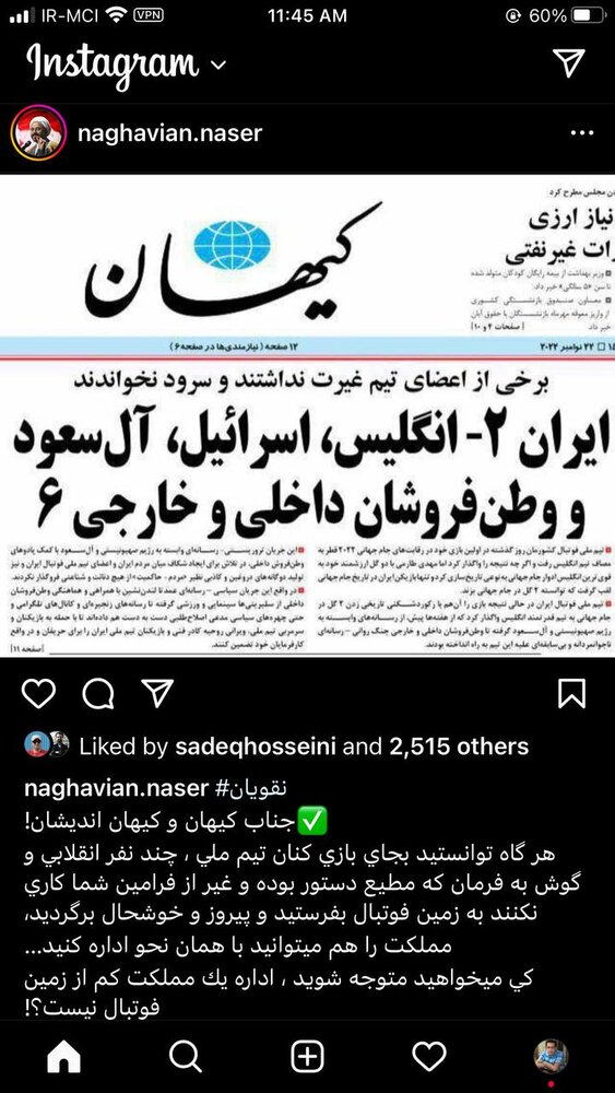 کنایه سنگین ناصر نقویان به «کیهان و کیهان اندیشان»