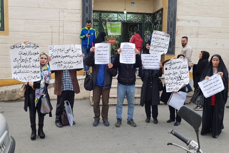 جمعی از مال باختگان یک پروندهی کلاهبرداری شنبه ۲ آذر برای پیگیری مطالبات خود در این پرونده و حمایت از قاضی سابق پرونده جلوی درب دادگستری شهرری همراه با پلاکارد تجمع کردند.