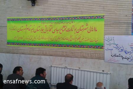 جمعی از مردم «بوانات» از توابع استان فارس با در دست داشتن تابلو نوشته هایی در مخالفت با افتتاح عجولانه ی بیمارستان این شهرستان در دهه ی فجر، در مقابل دفتر امام جمعه تجمع کردند.