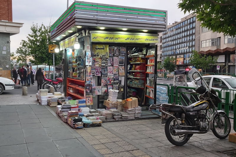 جلوی یکی از دکههای میدان انقلاب میایستم تا نگاهی به روزنامهها بیاندازم. مرد میانسالی هم بجز من مشغول خواندن تیترهای روزنامههاست. روزنامه همشهری را بر میدارد و صفحات داخلی این روزنامه را بررسی میکند ولی از خرید آن منصرف میشود. این دکهدار میگوید: «بیشتر درآمد ما حاصل از فروش سیگار، آب و خوراکیهای دیگر است.