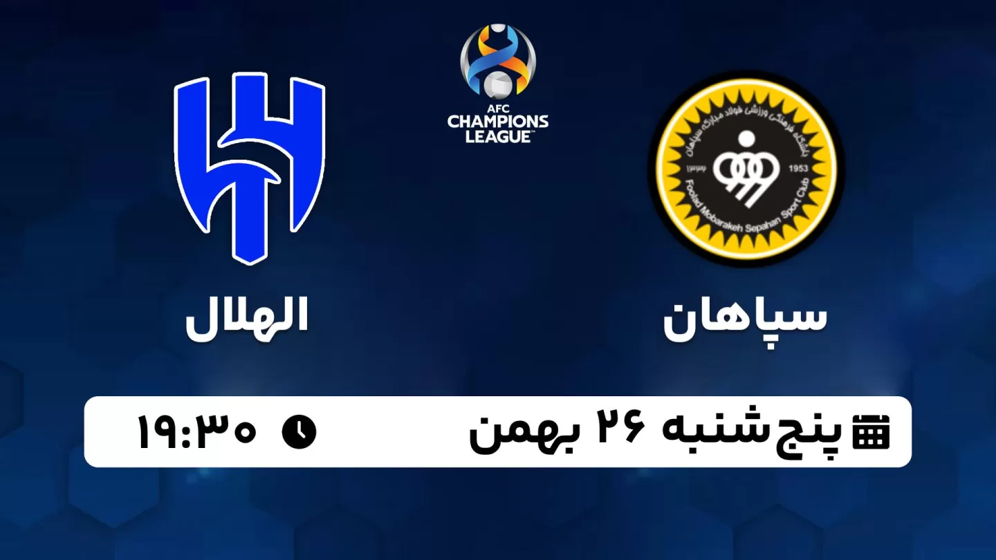 پخش زنده بازی سپاهان الهلال را به صورت رایگان ۱۹:۳۰ روز پنج شنبه ۲۵ بهمن اینجا ببینید:
