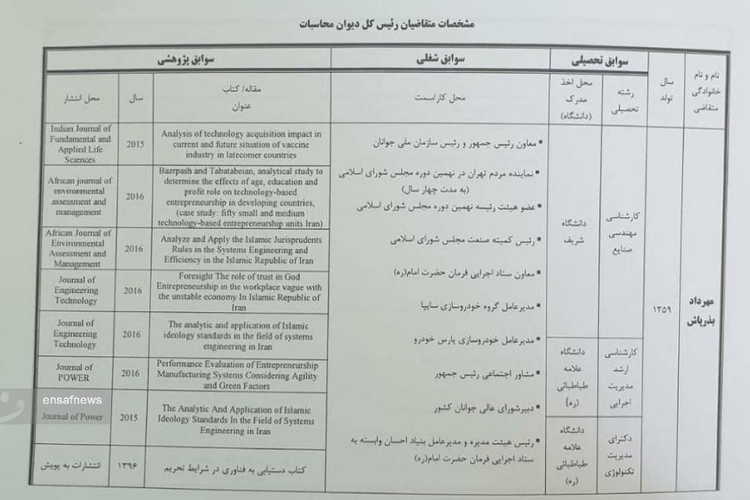 یکی دیگر از ادعاها دربارهی اطلاعات سوابق شغلی / پژوهشی مهرداد بذرپاش رییس جدید دیوان محاسبت واقعیت ندارد؛ او هیچ گاه عضو هیات امنای دانشگاه شریف نبوده است.