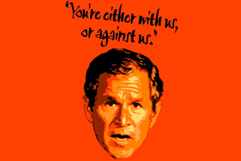 بوشِ پسر بعد از حملههای یازدهمِ سپتامبر میگفت که یا با ما هستید یا با تروریستها.