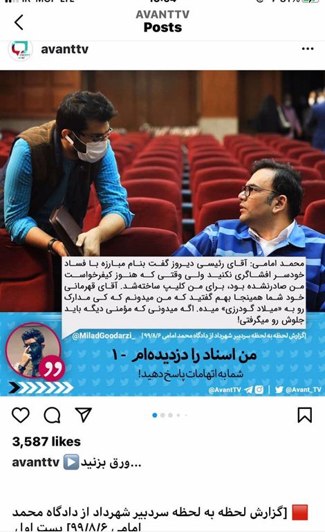 البته نگاهی به مطالب منتشره در فضای مجازی از روند جلسات دادگاه امامی نیز نقضکننده ادعای فرمایشی بودن پوشش خبری جلسات رسیدگی به اتهامات این فرد است؛ به طور مثال یکی از فعالان رسانهای که از کنشگران فضای مجازی نیز محسوب میشود به نام میلاد گودرزی به نمایندگی از خبرگزاری نسیم، علاوه بر اینکه در اغلب جلسات دادگاه متهم امامی حضور داشته، از همان درون جلسه به صورت لحظه به لحظه رخدادهای جلسات دادگاه از جمله مواضع متهم امامی را در اکانت توییتری و پیج اینستاگرامی خود بارگذاری میکند.