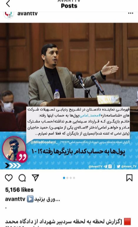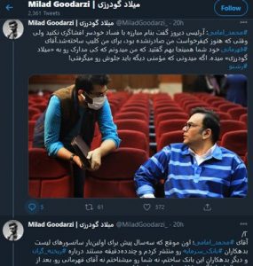 نگاهی به صفحات توییتر و اینستاگرام میلاد گودرزی و پوشش لحظه به لحظه جلسات دادگاه امامی توسط این فعال رسانهای نیز گواهی بر باطل بودن ادعای فرمایشی و یکسویه و یکسان بودن پوشش خبری از جلسات دادگاه امامی است.