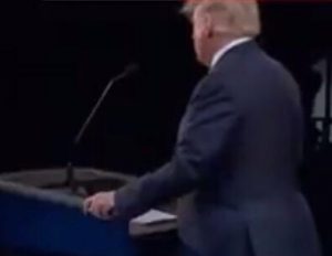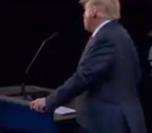 در دو عکس بعدی اگر، به شانهی سمت چپ ترامپ که به سمت دوربین است توجه کنید، عقب کشیدگی شانهی ترامپ را میبینید که این حرکت را از او ما زیاد دیدیم. این انقباضها ناشی از اضطراب او است. هروقت که میخواهد خودش را بزرگتر از چیزی که است نشان دهد یا کم نیاورد یا به عبارتی خودش را در جدال میبیند، (حتی وقت هایی که در دوران ریاست جمهوریاش بود و میخواست کاری انجام دهد که ریسک سنگینی داشته است) این نوع انقباضها و پرش شانهاش را میبینیم. این موضوع نشان میدهد چقدر این مناظره برای ترامپ سخت بوده و میداند که آرای دموکراتها از او بیشتر بوده است و در این مناظره اصلا خودش را جلوتر نمیبیند بلکه عقبتر میبیند و اضطراب دارد.
