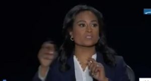 سه تصویری که از خانم کریستین ولکر میبینید، زمانی است که به ترامپ واکنش نشان میدهد. ما بالاکشیدگی لب بالا را در تصویر اول میبینیم ولی در تصویر سوم آن بالاکشیدگی کمتر است. یک سمت صورت و دهان ایشان بالاتر رفته است و لبهایی که باریکتر شده است. پلک بالا چشمها کمی بالا رفته است و پلک پائین کمی منقبض شده است.