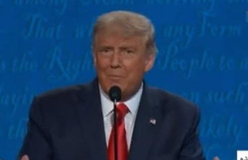 اینجا دقیقا همان موقعی است که ترامپ به بایدن میگوید تو داشتی با خانواده پول پارو میکردی در صورتی که او میداند بایدن پول پارو نمیکرده و پولهایی در حدود سه و نیم میلیون دلاربوده که از آن صحبت میکند که آن انقدر پول زیادی نیست که ترامپ بخواهد از لفظ پارو کردن استفاده کند. اما اینجا دارد اگزجره میکند تا بایدن را خراب کند به همین دلیل بازویش به این شکل میپرد.