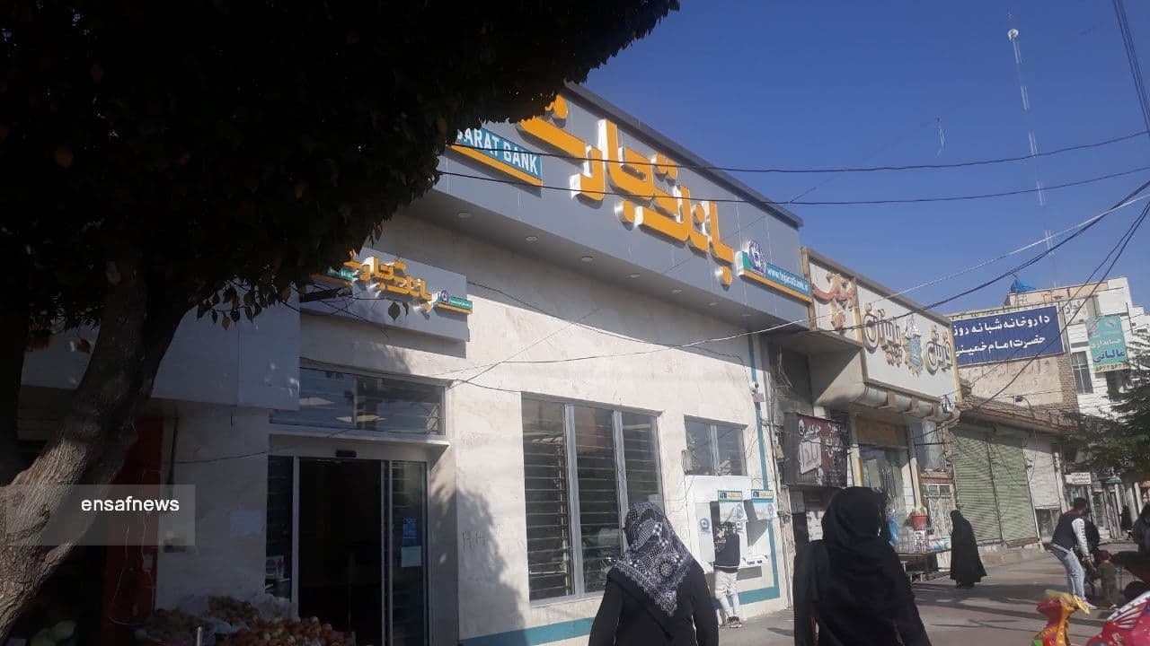 بعد از رستوران، با پیشنهاد خبرنگاران، برای تهیه گزارش از فروشندگان موبایل راه پاساژ اصلی شهر رباط کریم به سمت دیگر خیابان پیش گرفته شد. بعد از رسیدن به میانه خیابان اصلی شهر، محسن بانک ملی را که درست مقابل چشمان خبرنگاران بود نشان داد. آثار سوختگی بانک و همچنین لوگوی آن کاملا به چشم میآمد. دو خودپرداز بانک ملی هم برای کمتر آسیب دیدن به وسیله صفحات آهنی جوش داده شده بود. محسن گفت این بانک از سال گذشته به دلیل سوختگی زیاد در دست تعمیر بود و یک ماه پیش آن را باز کردند