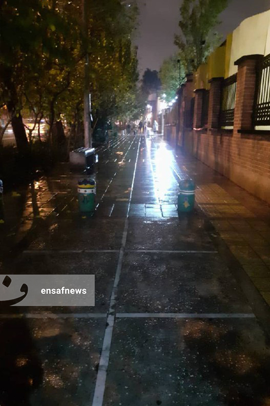 پارک لالههم به نسبت خلوت است. مردم در این پارک به نسبت روزهای عادی تردد کمتری دارند. هرچند بارش باران نیز در این خلوتی نقش دارد. تقریبا تمام روشناییهای پارک خاموشاند. فقط چند پرژکتور در حدی که فقط بتوان در بخشهای اصلی پارک عبور و مرور کرد روشن هستند. نکته جالب اما حضور چای فروشهای دورگرد است که حتی در این شرایط به کار خود مشغولاند.