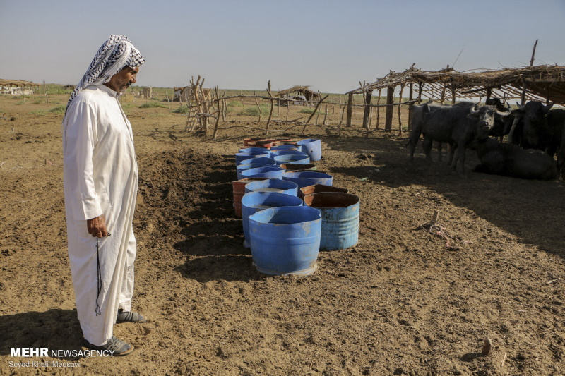 الان مدتی است که ما تنش آبی داریم. من ۵۴ ساله هستم و تا الان نشنیده بودم که رودخانهی کرخه بیآب باشد. یک قطره آب هم ندارد. ما در حاشیهی هور ۱۷ هزار گاومیش داریم؛ گاومیش حیوانی است که به آب نیاز دارد و یکروز هم آبتنی نکند میمیرد. ارتباطش با هور است؛ یعنی هم آبتنی میکند و هم در هور علفهای آنجا را مصرف میکند. روستاییان هور امرار معاششان از طریق ماهیگیری است. یک نوع ماهیهای محلی آنجا وجود دارد که بسیار کمیاب شده است.