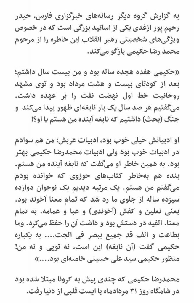کانال تلگرامی «محمدرضا حکیمی» با انتشار تصویر زیر نوشت: