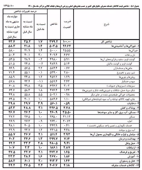 تورم گوشت قرمز و ماکیان ۰.۲ درصد و میوه و خشکبار ۱.۱ منفی بوده است. گروه شیر، پنیر و تخم مرغ تقریبا ثبات قیمت را تجربه کرد. بالاترین میزان تورم در بخش خوراکیها مربوط به محصولات طبقه بندی نشده است که ۵.۵ درصد رشد یافت و پس از آن سبزیجات و حبوبات ۳.۵ درصد نسبت به آبان ماه گران شد.