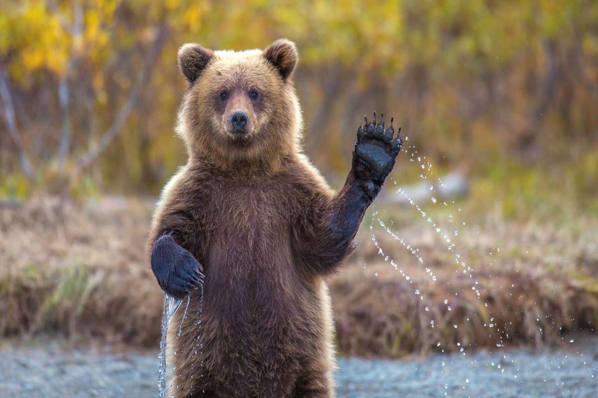 قدم زدن ترسناک خرس قهوهای در خیابان