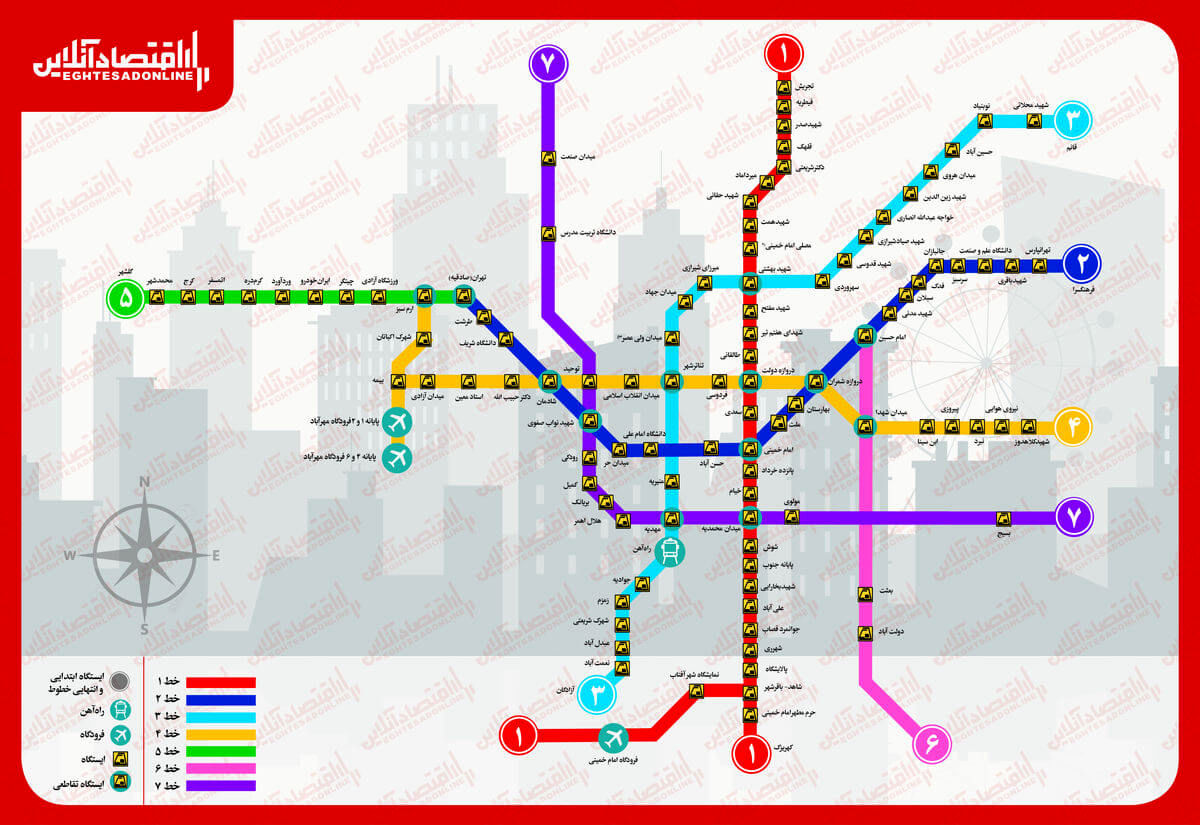 نقشه مترو تهران و اطلاعات خطوط فعال