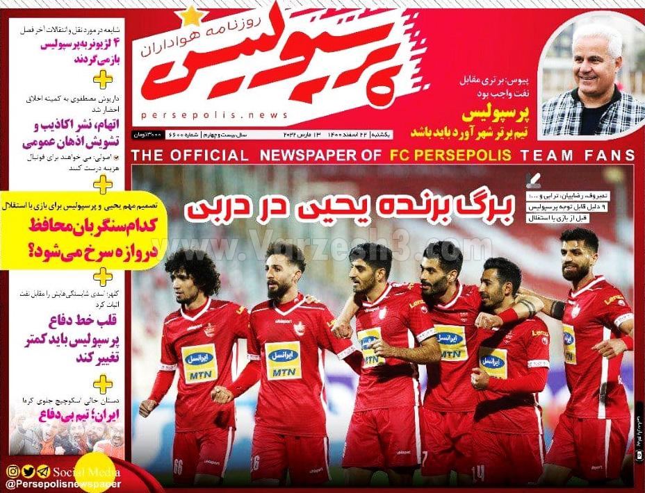 عکس | روزنامه پرسپولیس و استقلال ۲۲ اسفند ۱۴۰۰۰ زمان مطالعه کمتر از یک دقیقه انتهای پیام ۲۲ اسفند ۱۴۰۰۰ زمان مطالعه کمتر از یک دقیقه فیسبوک ایکس لینکداین پینتریست واتس آپ تلگرام اشتراک گذاری با ایمیل چاپ