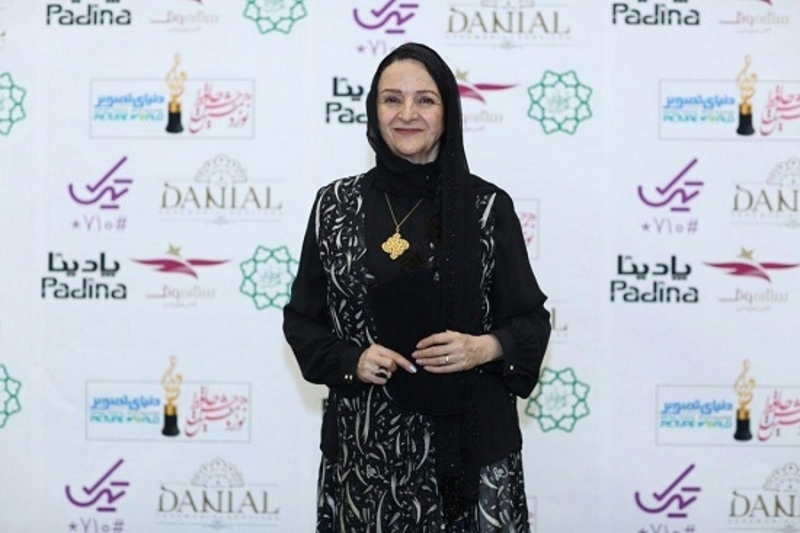 نورا هاشمی، فرزند این بازیگر، تندیس علی معلم را روی صحنه سالن همایشهای برج میلاد به گلاب آدینه تقدیم کرد.