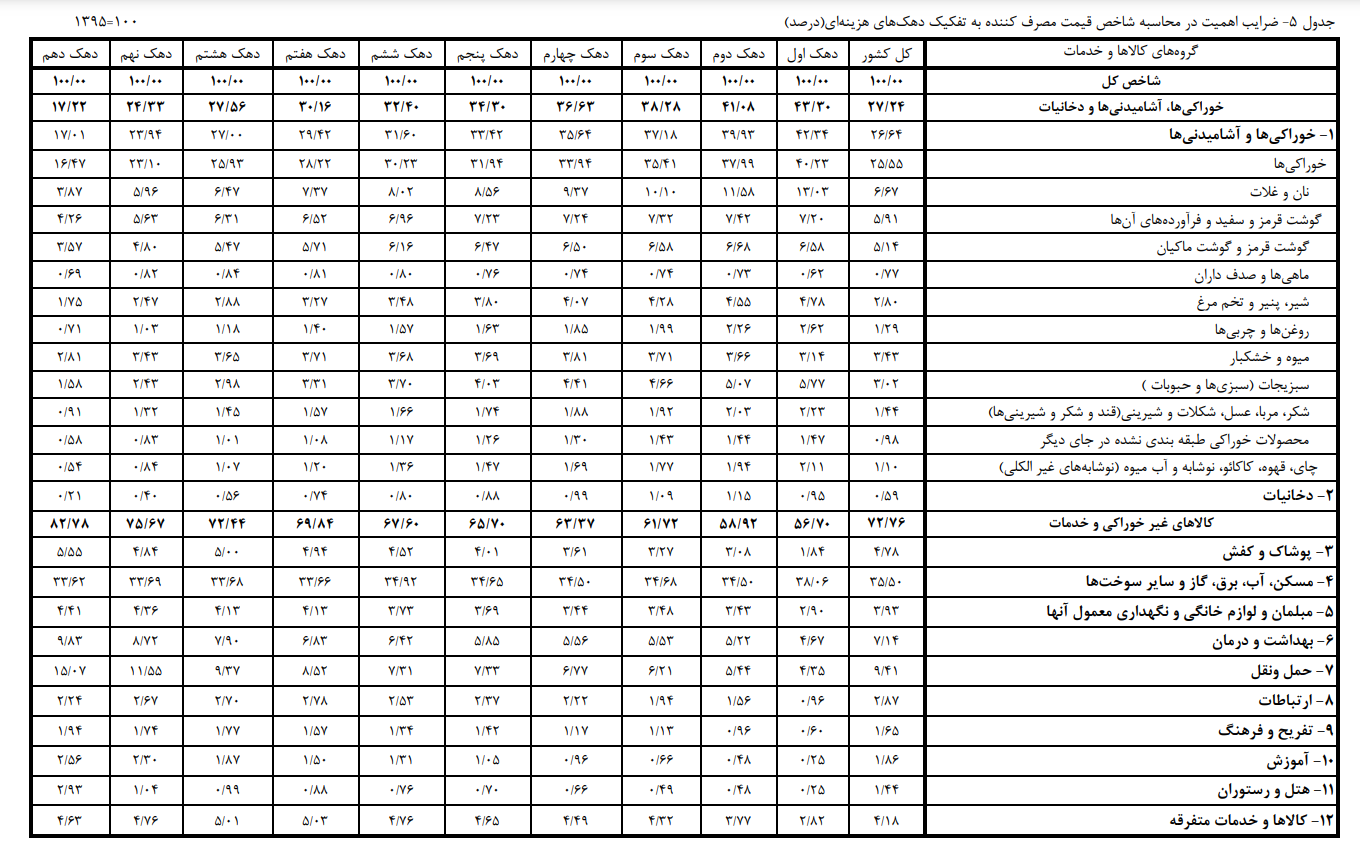 به گزارش انصافنیوز، گزارش شاخص قیمت مصرفکننده کل کشور که پنجم اردیبهشت ماه جاری توسط مرکز آمار ایران منتشر شد، نشان میدهد ضریب اهمیت اقلام خوراکی و آشامیدنی در سبد مصرف خانوارهای فقیر بیش از ۲.۵ برابر اهمیت آن در نزد ثروتمندان جامعه است و تقریبا نزدیک به نیمی از هزینههای خانوار (۴۳.۳ درصد) دهک اول را شامل میشود. معنای این سخن آن است که تورم مواد غذایی برای اقشار کمدرآمد جامعه به مراتب ملموستر و سختتر از برخوردارهاست.
