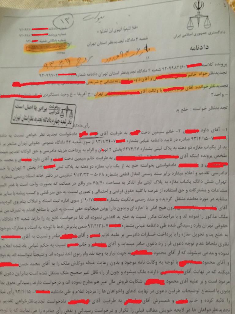 در گام بعد و باز هم با اعمال نفوذ، سرقفلی ملک تجاری هم به تملک آقای «ف.ن» درمیآید و این در حالیست که در شکایات و دعاوی «د.ز» و «ع.خ»، دادگاههای گوناگون حق «د.ز» در بهرهبرداری از سرقفلی را به رسمیت شناختهاند.