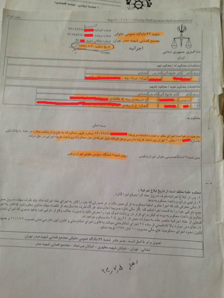 پیگیریهای «د.ز» نشان میدهد «محمود» چند دست ملک را گردانده و دست آخر آن را به نام برادرش، «محمدحسن» کرده است. این برادر هم در شراکت تجاری با یکی از فرماندهان سابق نیروی انتظامی با او به اختلاف برخورده و آن فرمانده سابق، توانسته حکم زندان و توقیف اموال شریک سابقش، «محمدحسن ع.خ» را بگیرد.