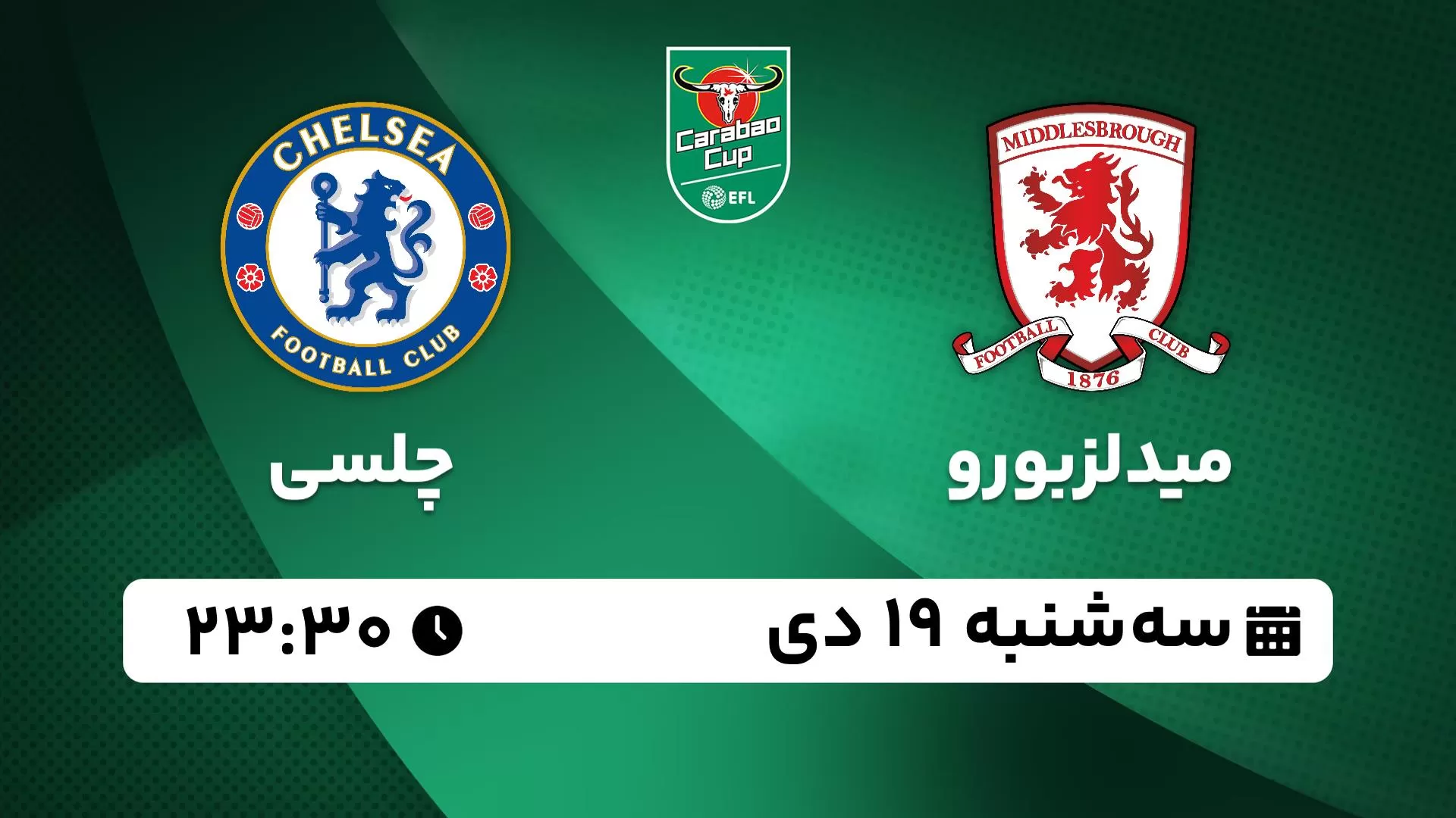 پخش زنده بازی چلسی – میدلزبرو | نیمه نهایی جام اتحادیه | سه شنبه ۱۹ دی ساعت ۲۳:۳۰