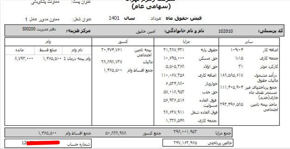بر اساس تصویر فیش حقوقی وی که توسط پرسنل شرکت منتشر شده است، امین خلیق با ۲۸ سال سن، ماهیانه حدود ۳۰ میلیون تومان حقوق میگیرد. در تصویر جمع حقوق ۲۹ میلیون و ۸۰۰ تومان درج شده که پس از کسر اقساط، حدود ۲۴ میلیون دریافتی داشته است.