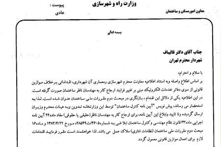 جناب آقای قاسمی وزیر محترم راه و شهرسازی جهت استحضار و صدور دستورات مقتضی