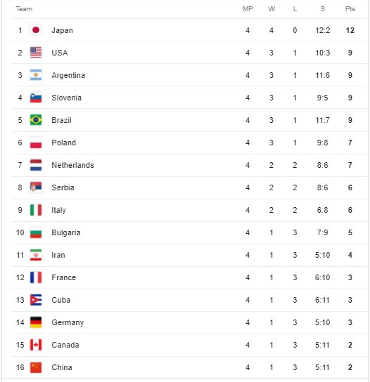 جدول رده بندی لیگ ملتهای والیبال ۲۰۲۳ در پایان هفته اول