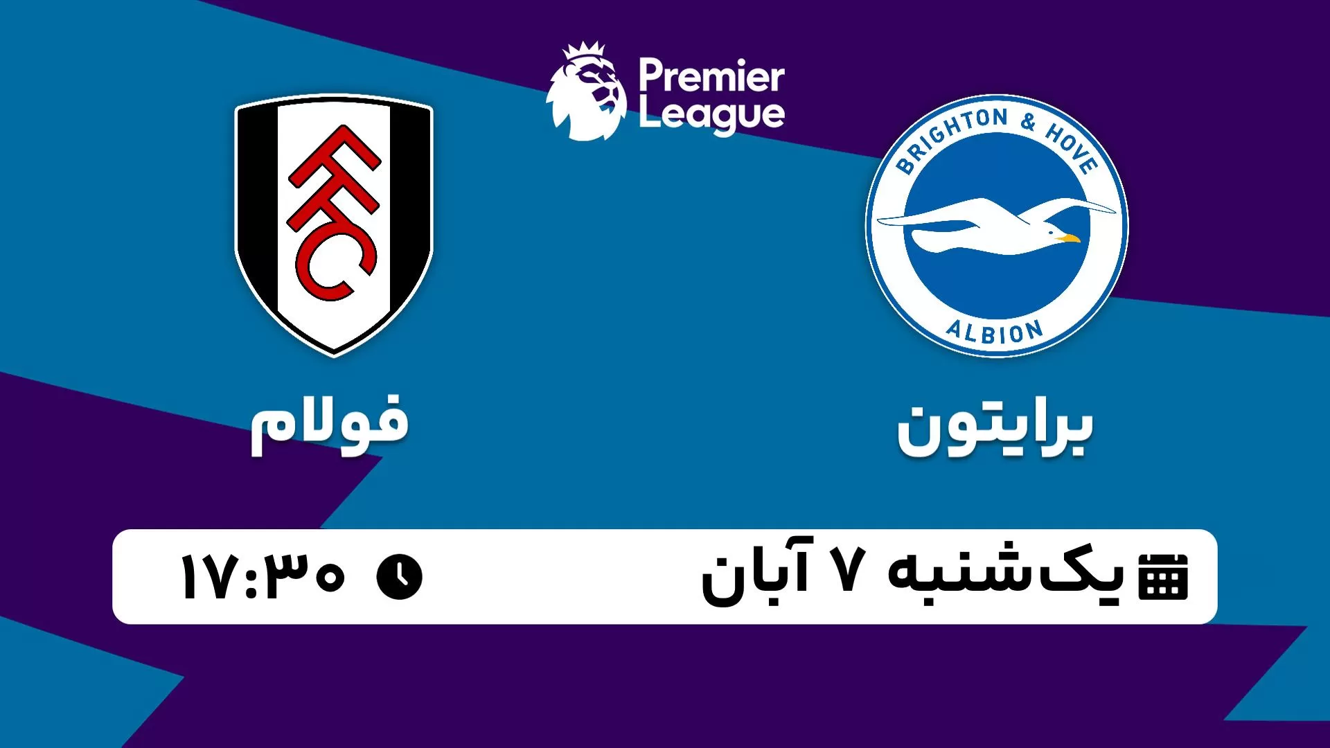 پخش زنده بازی برایتون – فولام از لیگ جزیره (لیگ برتر انگلیس) را امروز یکشنبه ۷ آبان ساعت ۱۷:۳۰ اینجا ببینید: