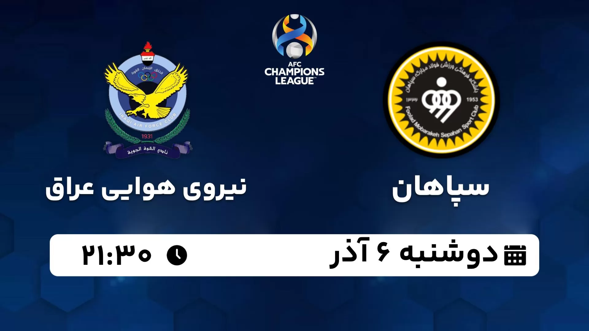 پخش زنده بازی فوتبال سپاهان و نیروهوایی عراق | امروز دوشنبه ساعت ۲۱:۳۰ از لیگ قهرمانان آسیا + حواشی و جزئیات