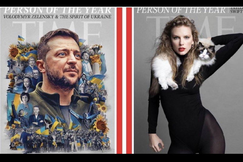 برخی از کاربران شبکههای اجتماعی به رفتار متفاوت مجلهی تایم در انتخاب فرد سال توجه نشان دادند؛ زلنسکی در زمان جنگ اوکراین و تیلور سوییفت در زمان جنگ غزه.