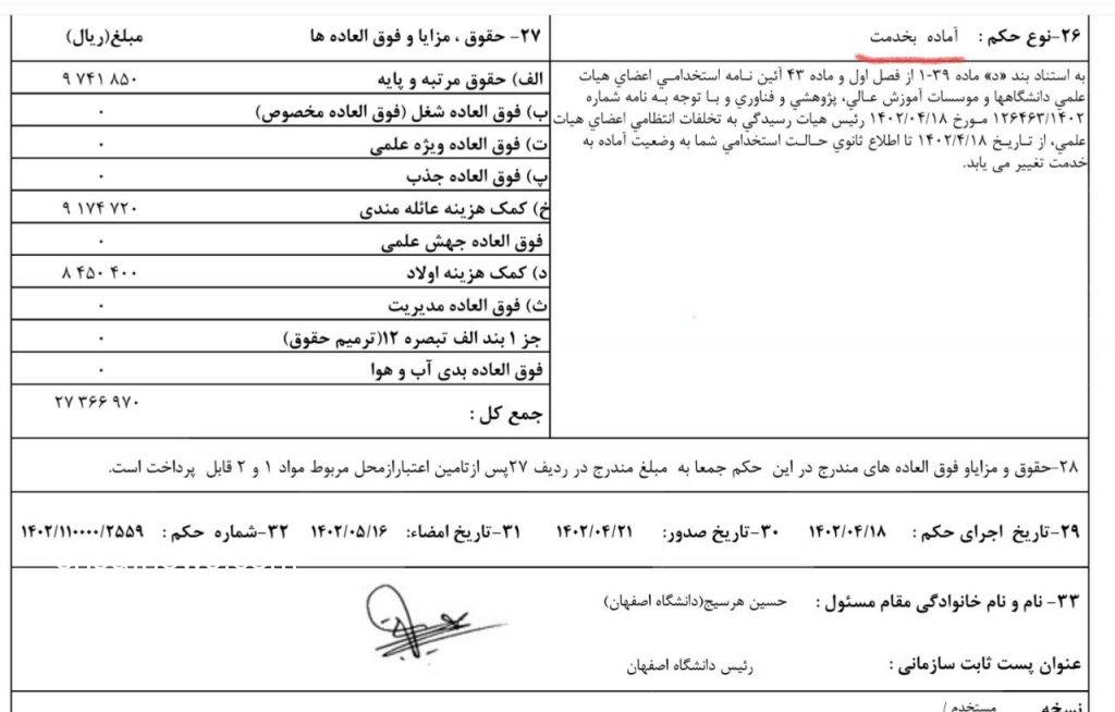یک استاد دانشگاه سه گونه وظیفه دارد؛ آموزش، پژوهش و وظایف اداری. من از تدریس منع شدهام، ولی همه مدت، وظایف اداری را انجام دادهام و پژوهشهایم به نام دانشگاه اصفهان ثبت میشود! از سه وظیفه، دو مورد را انجام میدهم، پس چرا حقوقم صفر شود؟! چرا نمیتوانم در برابر هیئت رسیدگی به تخلفات، وکیل مدافع داشته باشم؟! چرا نمیتوانم در برابر افتراءزنندگان اعلام جرم کنم؟! چرا ماهها پس از اعلام نظر قطعی دادگاه، باز تعلیق ادامه دارد؟! و هیئت رسیدگی تا چه زمانی میتواند اعلام نظر نکند و مرا و خانودهام را در فشار بگذارد؟ جرم اثباتنشده، تعلیق میشوی! تبرئه هم بشوی، باز تعلیق ادامه پیدا میکند!