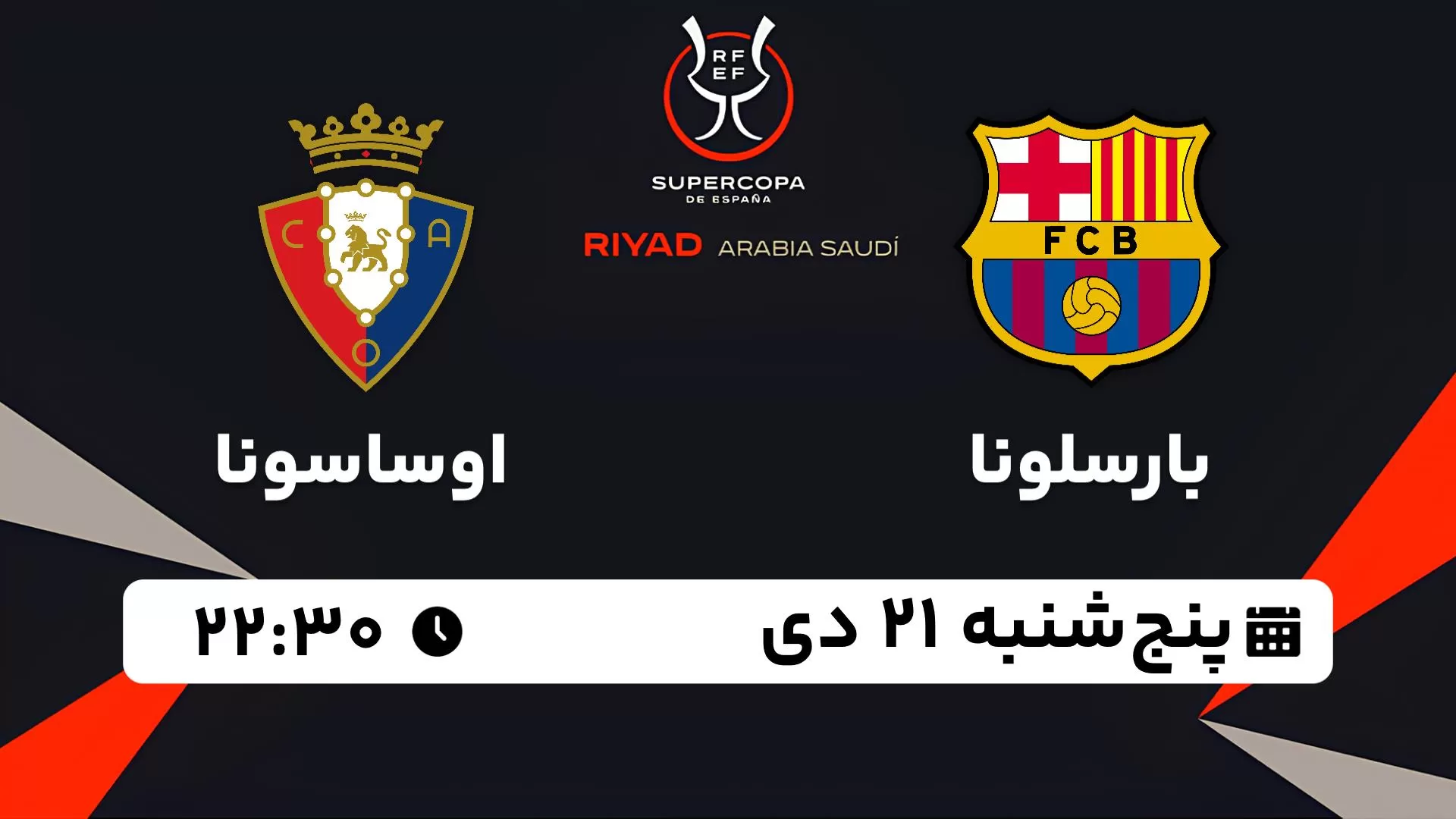 پخش زنده بازی بارسلونا – اوساسونا | نیمه نهایی سوپرکاپ اسپانیا پنج شنبه ۲۱ دی ۲۳:۳۰