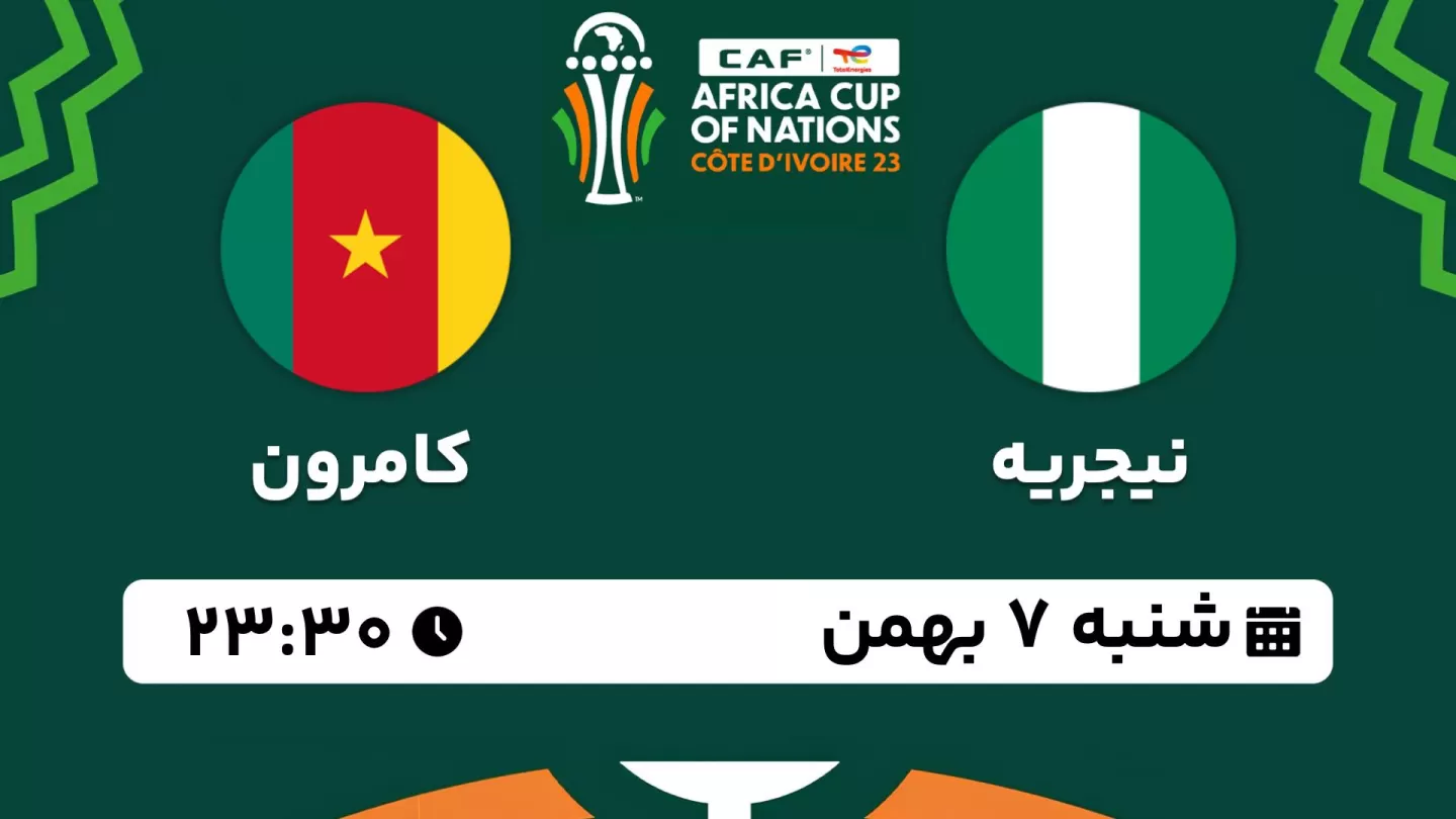 پخش زنده بازی نیجریه – کامرون | شنبه ۷ بهمن ۲۳:۳۰