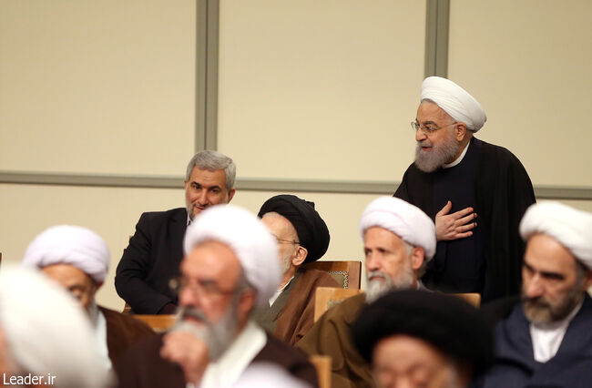 حسن روحانی و سیدمحمود علوی، دو کاندیدای میانهرو رد صلاحیتشده انتخابات مجلس خبرگان رهبری در دیدار اعضای این مجلس با رهبری حضور داشتند.