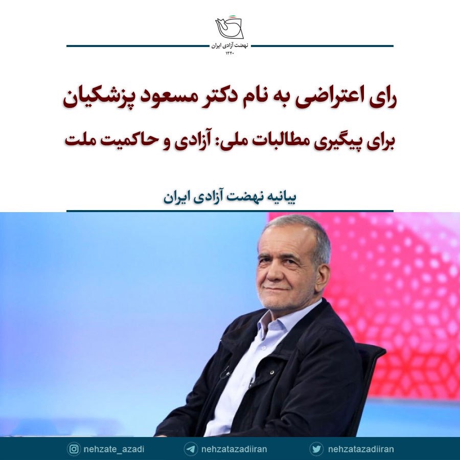 نهضت آزادی ایران: برای پیگیری مطالبات ملی به نام مسعود پزشکیان رای اعتراضی خواهیم داد