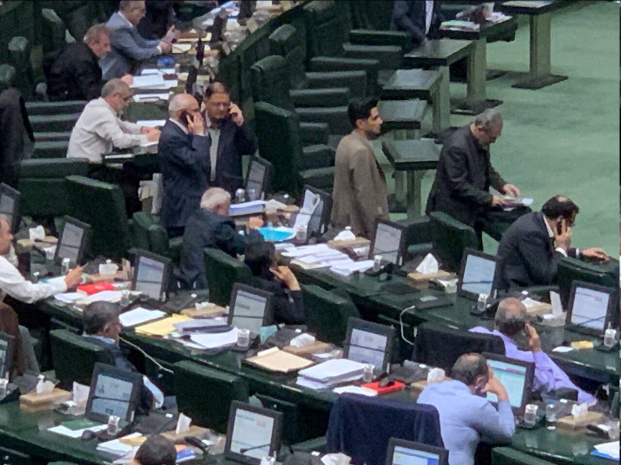 نادران سپس در مقابل جایگاه هیات رییسه حاضر شد و بر روی زمین نشسته است و تعدادی از نمایندگان برای هدایت وی به صندلیاش، اطراف وی جمع شده اند اما الیاس نادران به تحصن خود ادامه داده است.
