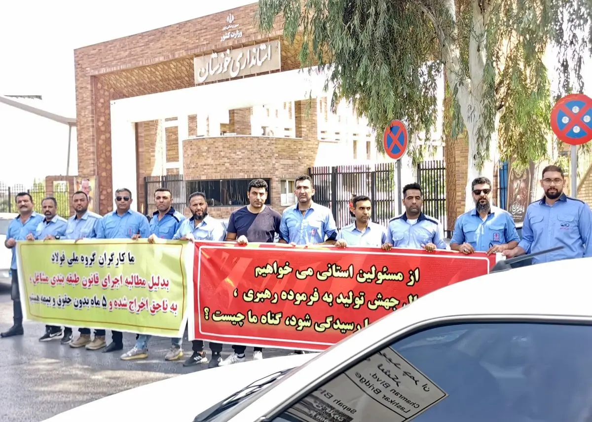 کارگران اخراجی گروه ملی فولاد، مقابل استانداری تجمع کردند.