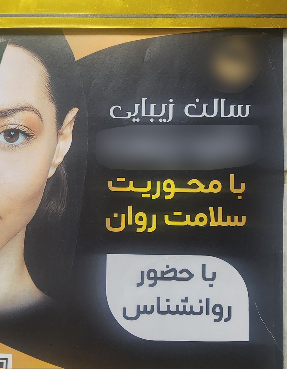 برترینها: انتشار تصویری از آگهی تبلیغاتی یک آرایشگاه زنانه در میان کاربران فضای مجازی پربازدید شده است. نکته قابل توجه در این عکس، اعلام حضور روانشناس در این سالن زیباییست.